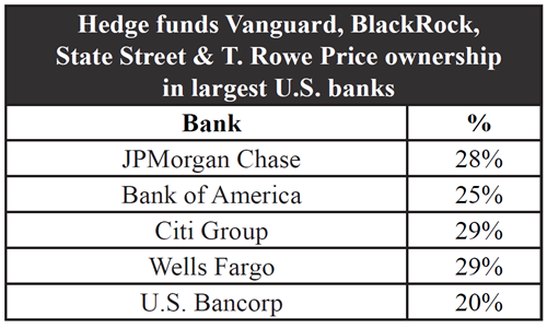 Table 1 Hedge Funds Vanguard, BlackRock, State Street and T. Rowe Price Ownership in Largest U.S. Banks.